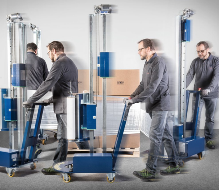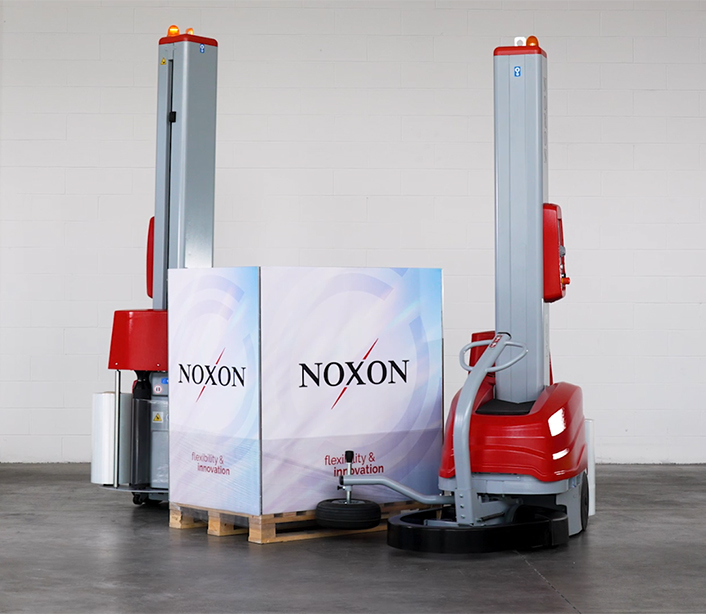 ROBOT MAS 3は、バッテリー駆動の自走式ストレッチ包装ロボットです。製品を固定した場所に置かずに、どこでもその場でパレットをラッピングできます。あらゆる重量・形状・サイズの製品に対応します。